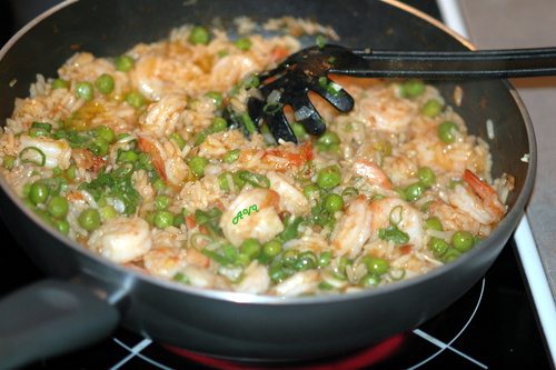 Рис с креветками и зеленым горошком