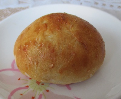 Разделила его на две части. Из половины сделала небольшие булочки без начинки. Тесто разделила на 12 частей, сформовала булочки, положила их на противень (плита 50 см).