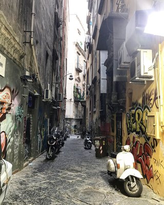 А далее Неаполь - город с мрачными, в сумерках немного даже жутковатыми, узкими улочками, дворами. Но все равно, в нем есть своя особая притягивающая к нему атмосфера.