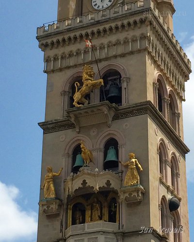 В полдень на Соборной площади бьют астрономические часы, одни из самых больших в мире, и начинается такое же медленно-медленное ( как в прочем и все здесь ) представление позолоченных библейских фигур. Порядка 15 минут идет все действо.