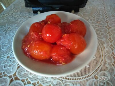 Итак, для укладки в баночки я беру вот такие крошечные помидорки. А вот для заливки нужны вкусные сладкие сочные и очень красные помидоры.