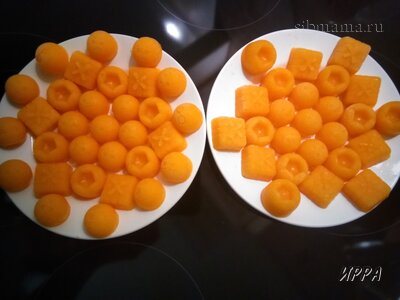 Если нужен будет сырой вариант (например, на оладушки), то часть тыквы можно натереть на тёрке, отжать от сока и тоже заморозить.