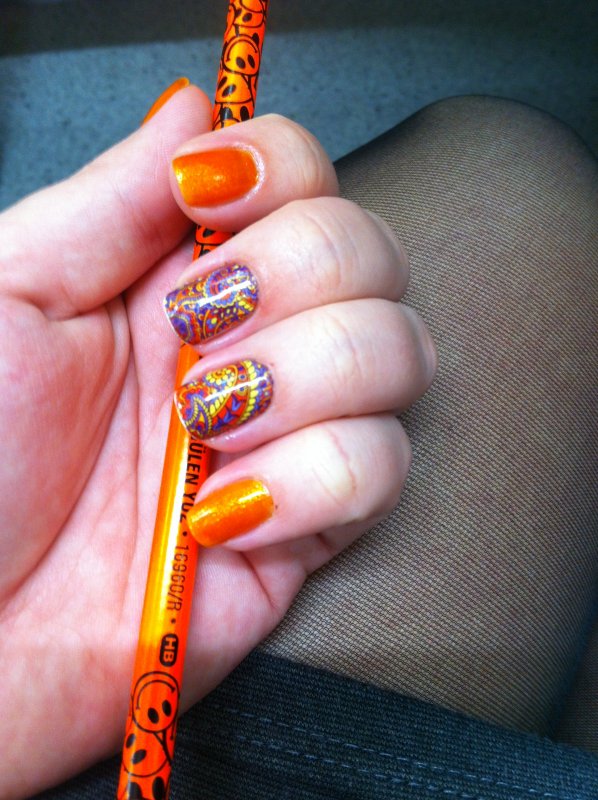 Полюбовалась на ваши чудесные маникюры, девочки, и сама не сдержалась, хотя оранжевый на себе вообще не люблю