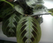 Листья похожи на разновидность Маранты Керховена, но пятна оливково-коричневого цвета