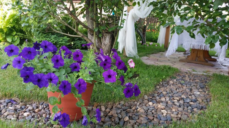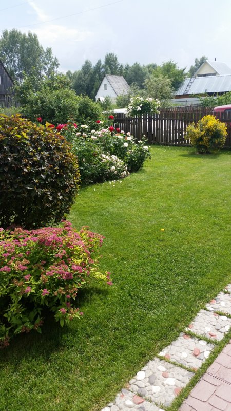 Нашей даче 10 лет, находится на берегу Оби в Колыванском районе. Участок всего 5 соток - остро ощущаю нехватку земли для осуществления своих мечтаний :-) На участке расположен небольшой дом(1-й этаж 34 кв.м. и мансарда-спальня около 20 кв.м.), к которому в данный момент пристраивается веранда и ожидается общее облагораживание дома, но это уже в будущем году. Кроме дома имеется уютная банька, хоз.блок, беседка и мангальница - все это и всякие ландшафтные прибамбасы сделаны руками мужа, который, к моей великой радости, так же фанатеет от дачи как и я :-) В наследство от прежних владельцев достался заброшенный участок, но зато со взрослыми фруктово-ягодными посадками. Обустройство участка начали с газонов и еще года три засевали освободившиеся клочки земли. Лет 5 занималась собирательством всяких декоративных растений и зашла в тупик - вроде всего много и все такое красивое, а общей картинки не складывается...закончила курсы ландшафтного дизайна, мозги немного встали на место и понеслось...я рисую - он делает :haha: В общем, моему мужу можно ставит памятник при жизни :haha: Наш сад далек от совершенства и находится в постоянном развитии - буду обязательно делиться с вами новыми радостями :-)