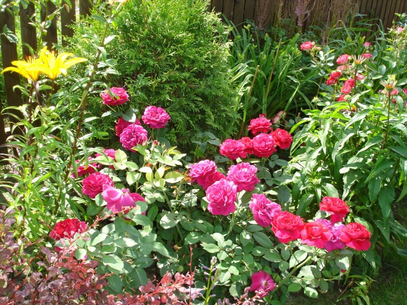 очень гармоничные розарии и композиции с декоративными и хвойными!