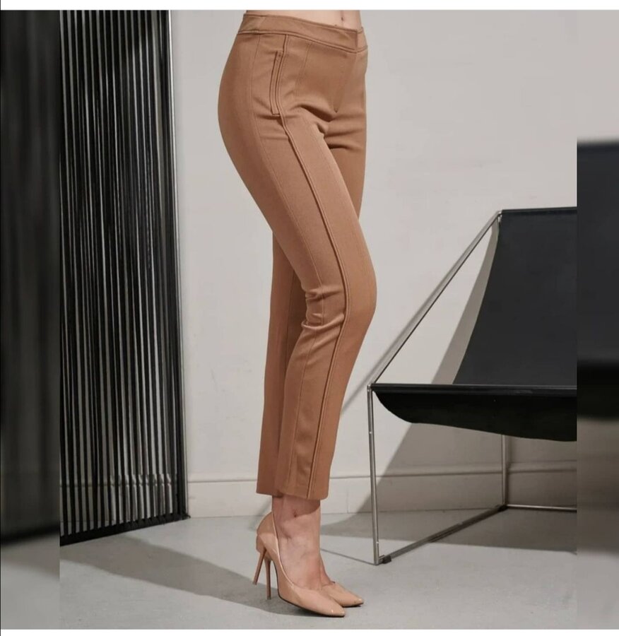 получили брюки , отличные, посадка, ткань комфортная, по плотности они всесезон, мне кажется, не тонкие, сидят исключительно хорошо, длина полная, можно с каблуком