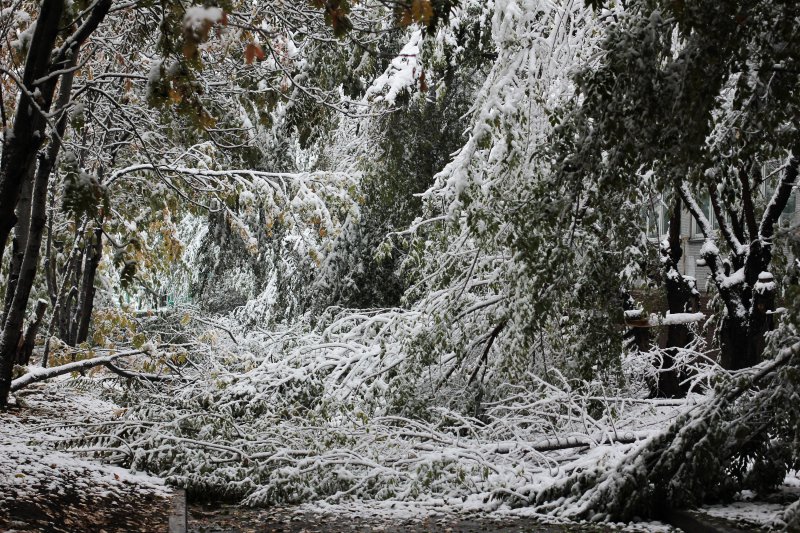 Новосибирск, ул. Линейная, 09.10.16 - первый сильный снегопад, переломавший кучу деревьев.