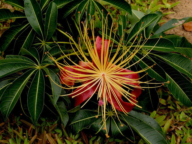 В естеств. природе это дерево, у нас не растет, только, как комнатное растение выращивать можно. Цветет изумительно: тычиночные нити в 2 раза длиннее самого цветка.