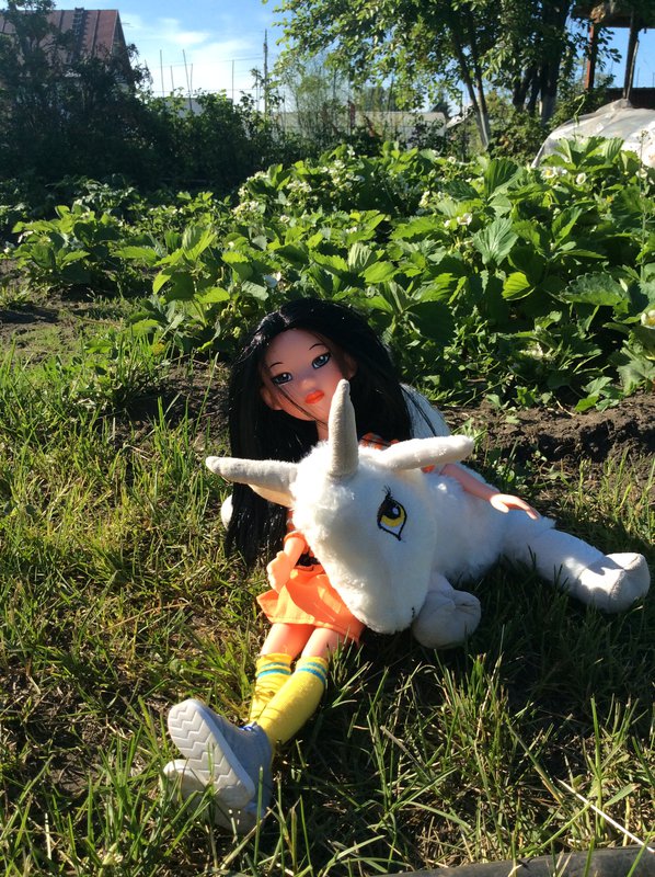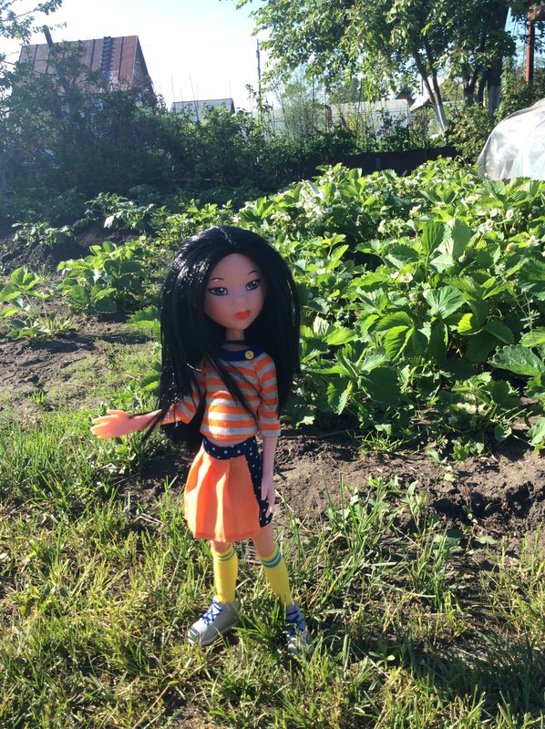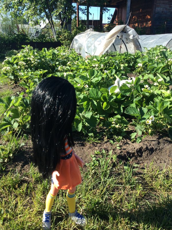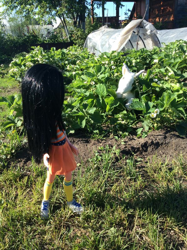 Дачная зарисовка с участием моей куклы и игрушки дочери. Сценарий предполагался другой (и без игрушки), но дочь решила сделать свой.