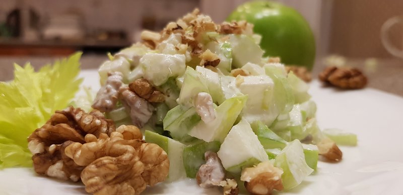 Легкий салат с сельдереем, яблоком и грецким орехом