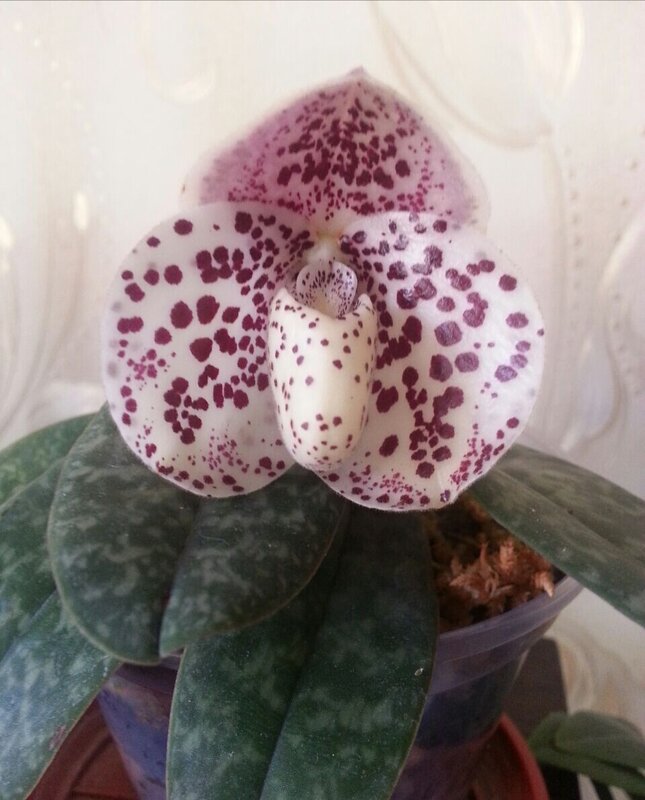 Paphiopedilum bellatulum славный и покладистый малыш. Напоминает мне перепелиное яичко.