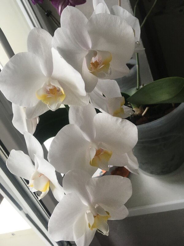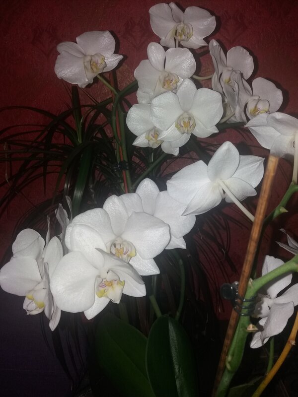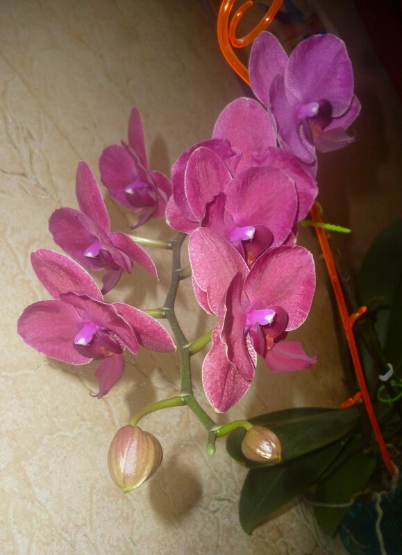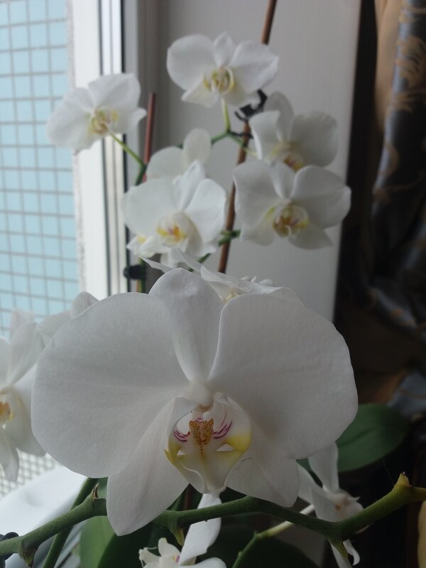 Добрый день! Я увлекаюсь орхидеями более 10 лет. Другие цветы у меня растут очень плохо, а орхидеи цветут круглый год. Их у меня порядка 8 штук. Почти все разной окраски: есть жёлтые и желтые с красными прожилками ещё. Сейчас цветут которые на фото и то малиновая уже отцвела. С каждым годом цветов больше и по количеству и по размеру. На фото у белой цветок порядка 8 см. Я точно не знаю вид первой орхидеи, но другие это фаленопсисы. Странно, но когда я уезжаю надолго, то цвести перестают. Наверное скучают.
