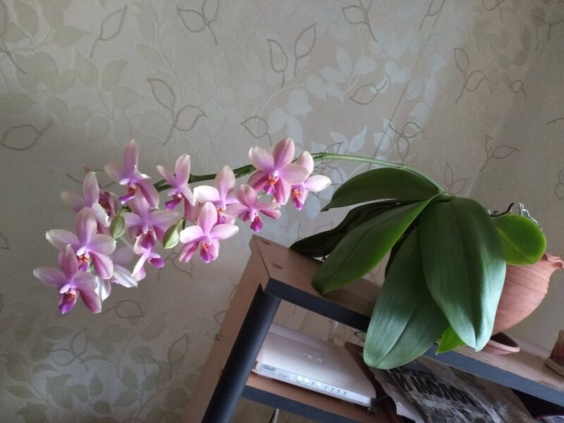 В этом году Phalaenopsis 'Fulu' установил рекорд среди моих растений по длительности цветения отдельно взятого цветка. Первый цветок на цветоносе раскрылся первого января, а начал увядать, после появления двух новых цветоносов, в конце июля. В итоге, почти семь месяцев продержался цветок, а весь цветонос отцвёл к середине августа.