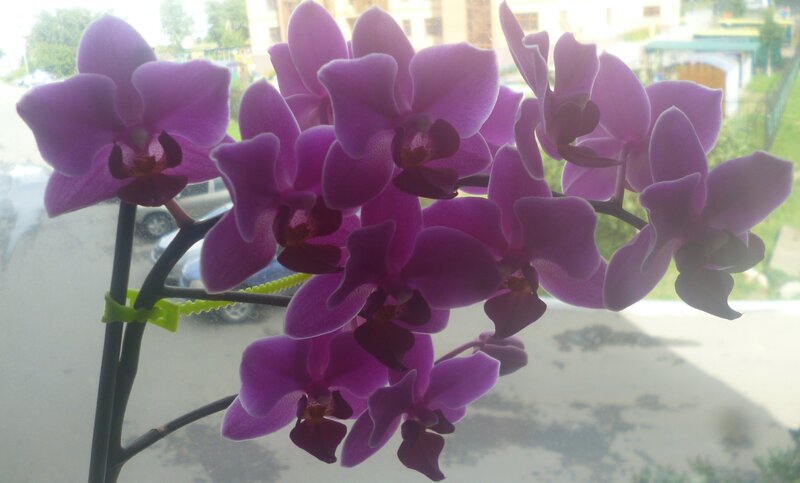 Гибридные фаленопсисы одни из самых неприхотливых и самых благодарных растений на моём подоконнике. И требуется им самая малость – солнце, немного воды и чуть-чуть удобрений, но и без удобрений они охотно цветут.