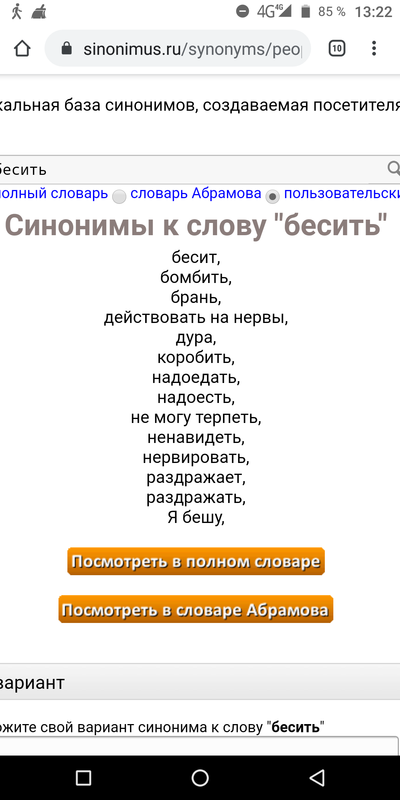 В Вашем списке порадовало слово "дура". Если я вдруг напишу, что Вы меня бесите, то это вовсе не значит, что я Вас ненавижу, это будет как раз тот синоним, который меня в Вашем списке рассмешил ну, это на тот случай, чтобы Вы не приписывали мне ненависть к себе.