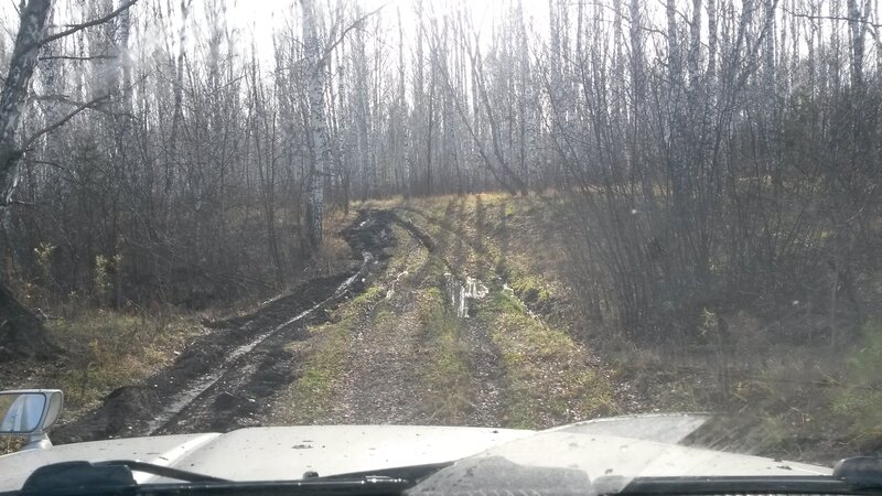 В Кусково всего 2 улицы – Нагорная и Речная. Проехали по Нагорной через деревню, оказались на опушке, с которой в лес уходили 2 дороги. Поехали по правой как более наезженной. Уехали недалеко. Навигатор обещал дорогу с твердым покрытием, но покрытие оказалось жидким.