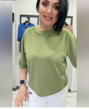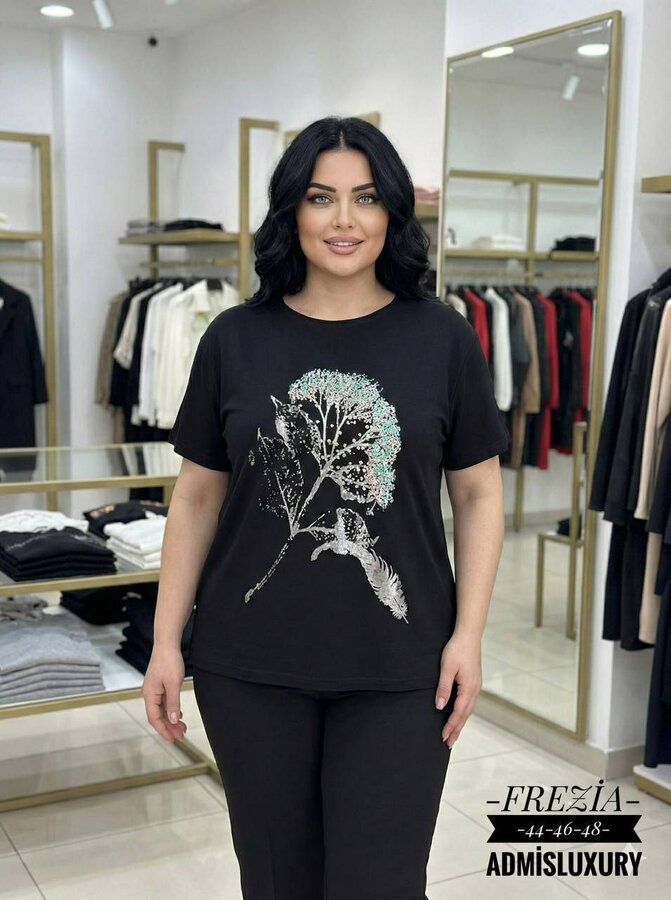 Пристрою размер XL, на 48 размер, ПОГ 54см. На грудь до 96см. Рост не выше 170см. Ткань хорошая. 1800р.