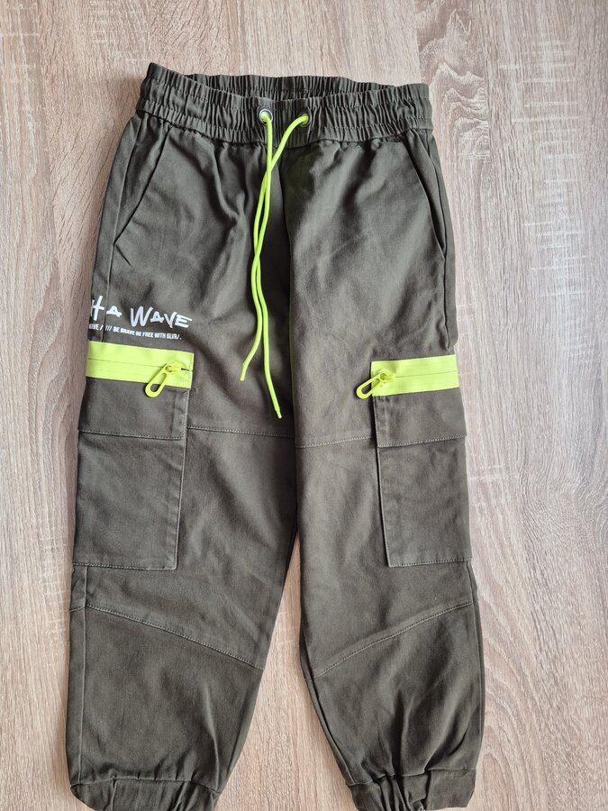 11.Брюки хаки Gulliver из толстого хлопка, на 5-6 лет, за 500 руб, длина по боку 68 см