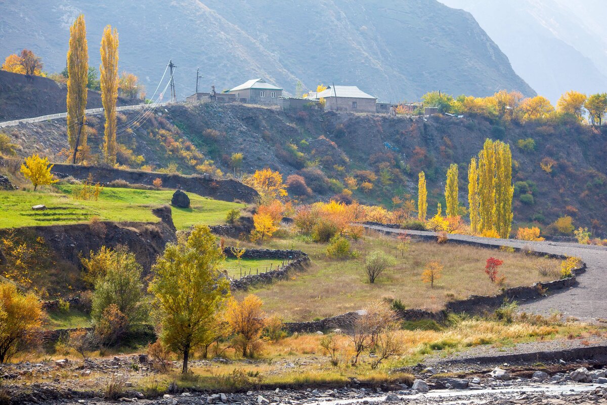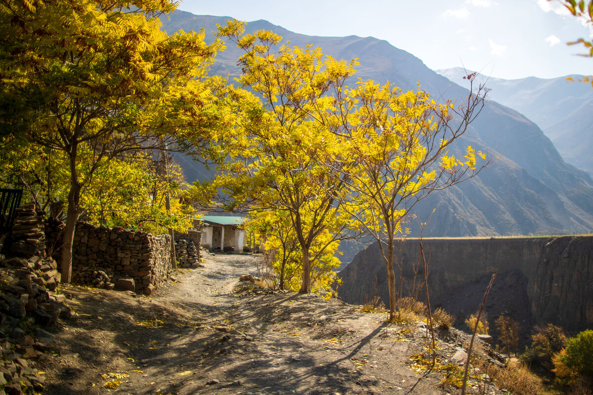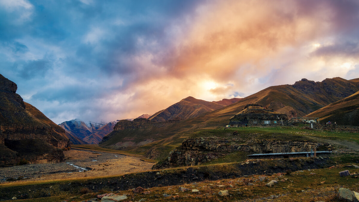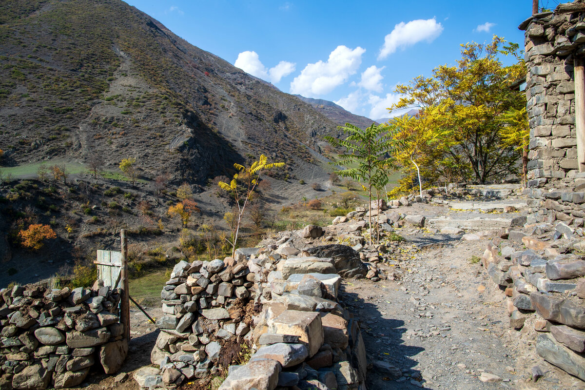 В этой долине на склоне горы расположилось небольшое поселенке. Когда-то здесь жило несколько семей, они давно уехали, а дома пришли в негодность.