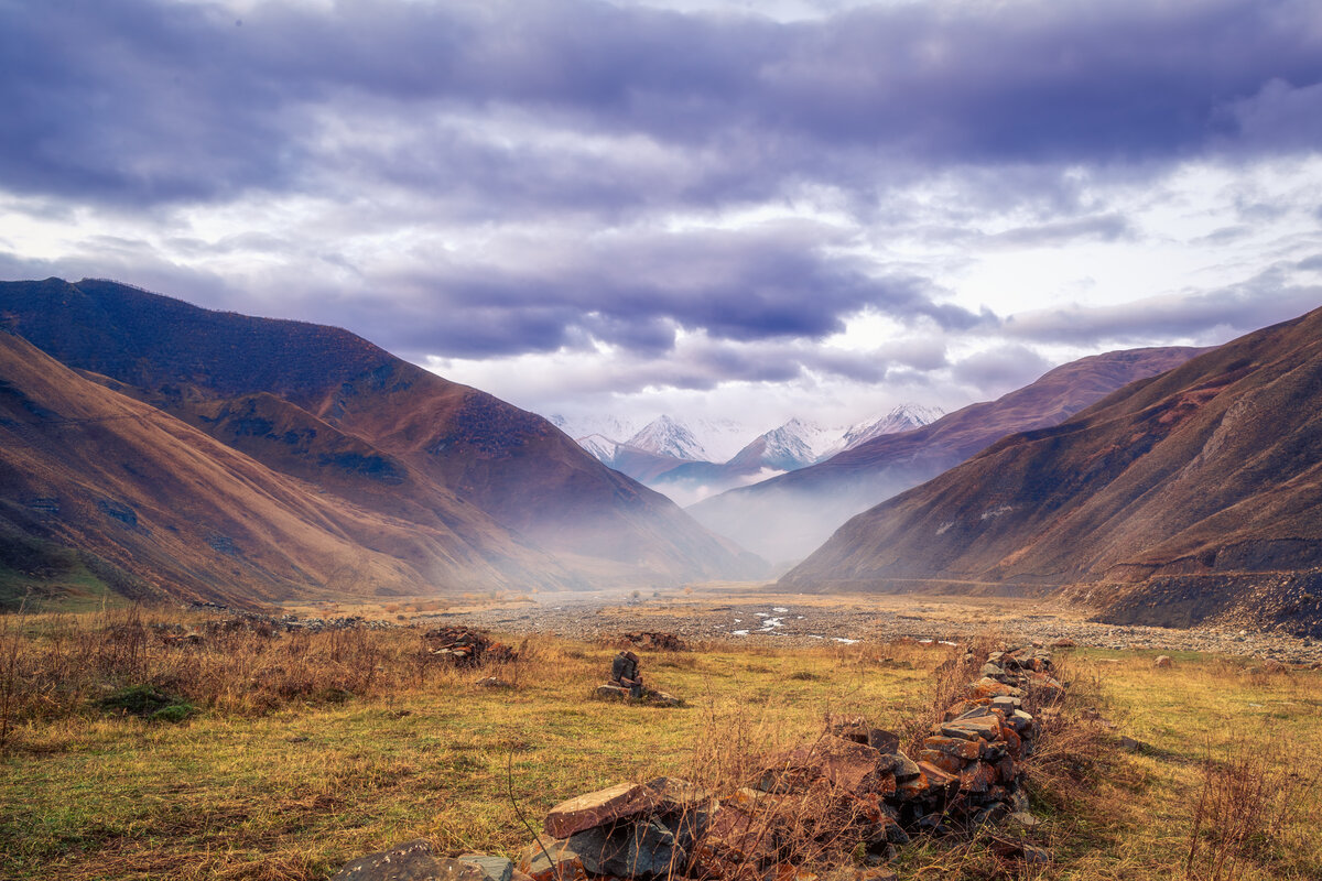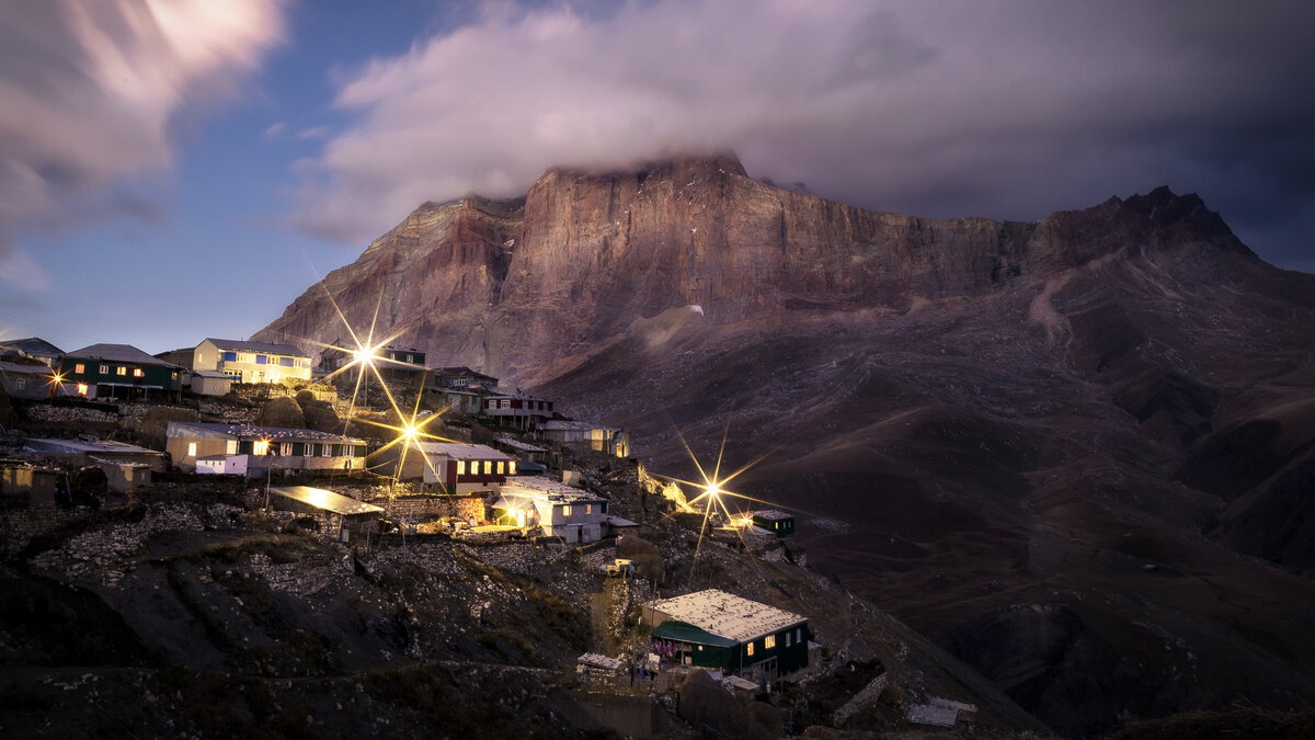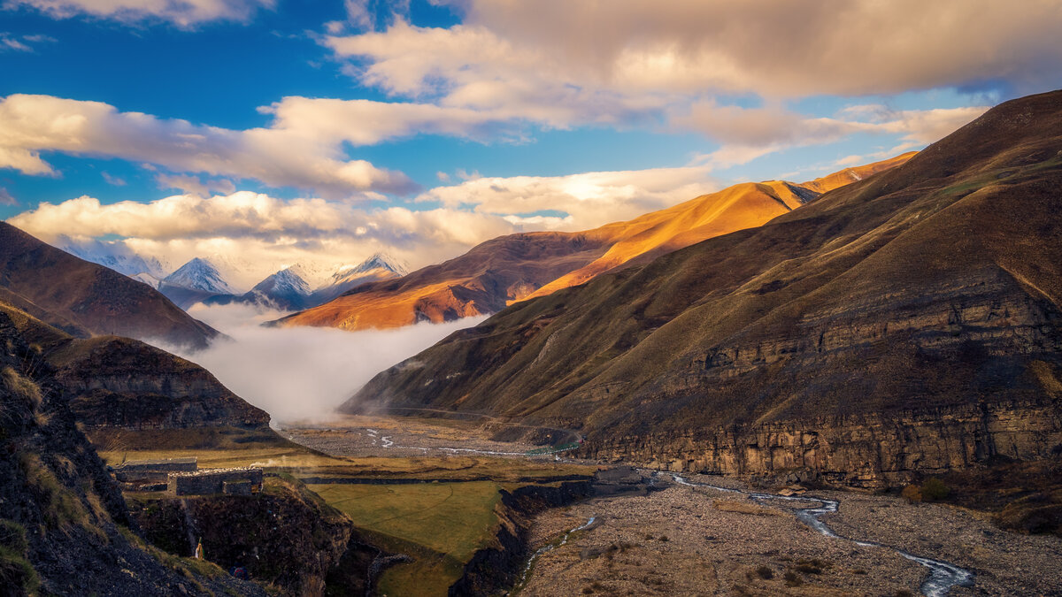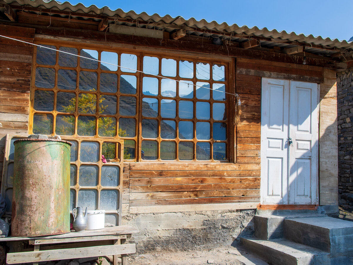 В этой долине на склоне горы расположилось небольшое поселенке. Когда-то здесь жило несколько семей, они давно уехали, а дома пришли в негодность.