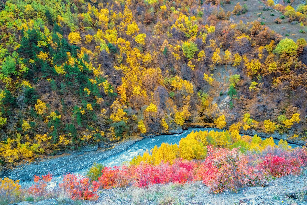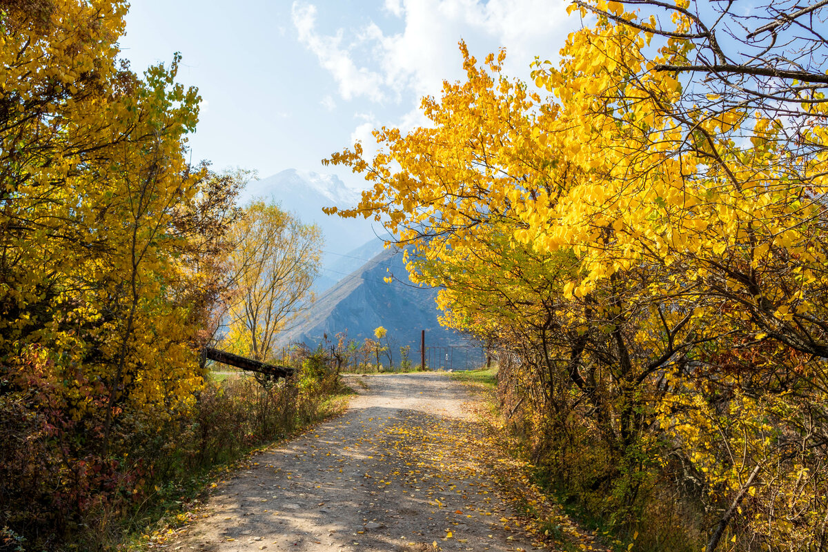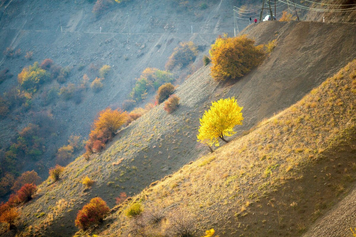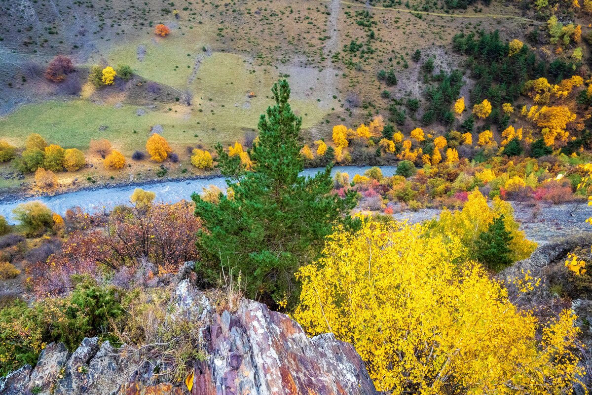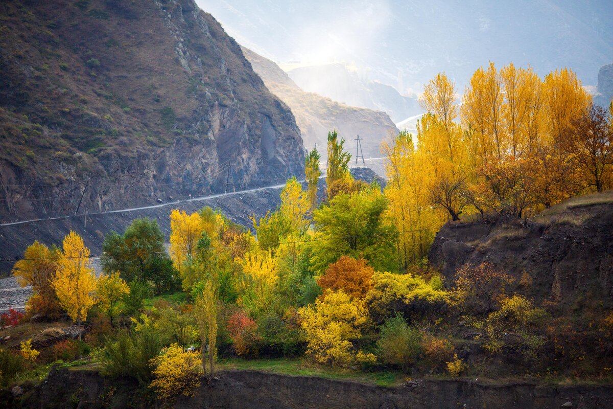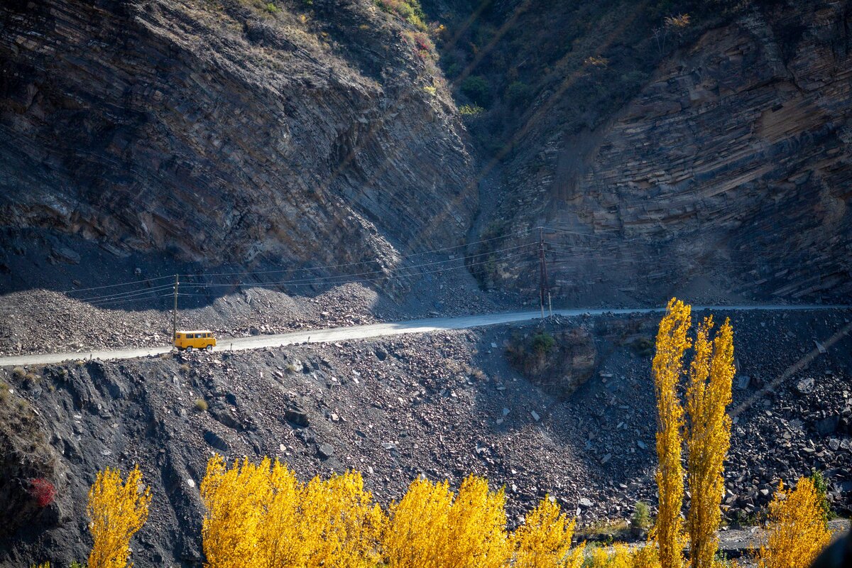 Но мы были вознаграждены невероятными видами: ущелье в осеннем наряде и причудливая игра солнечного света надолго остановили нас на горной дороге
