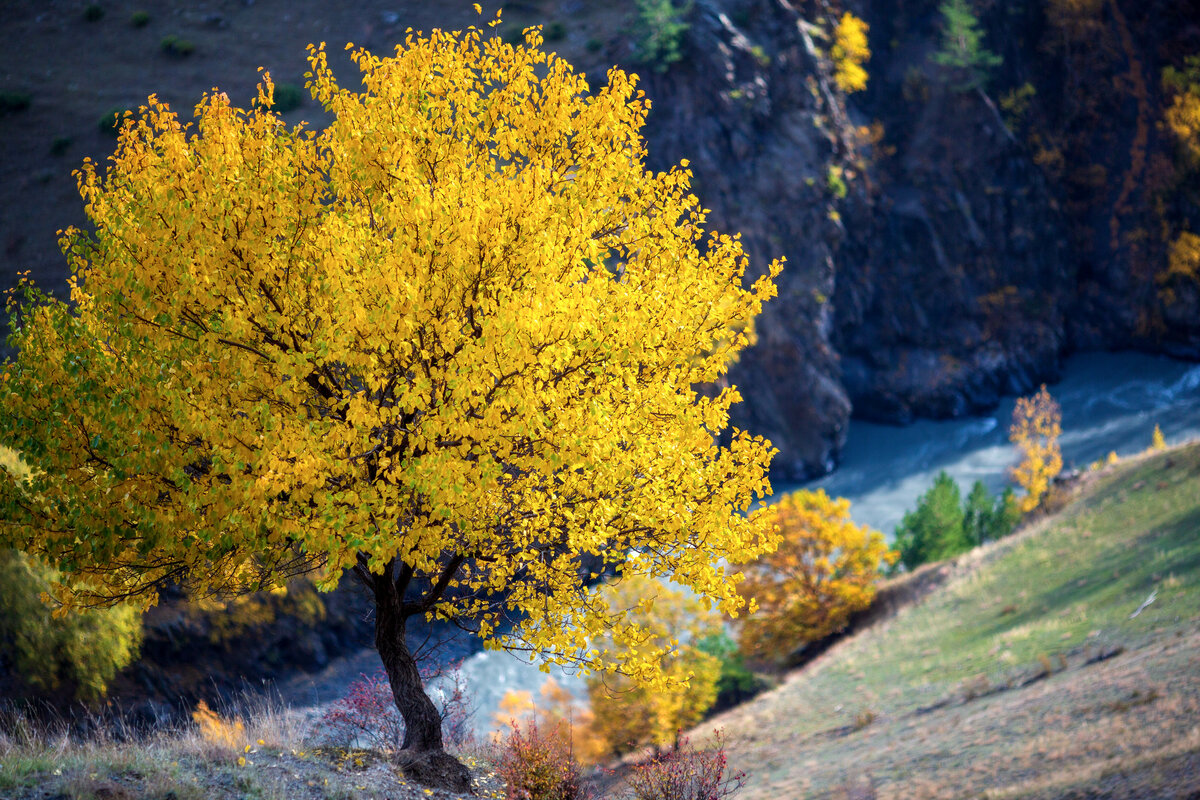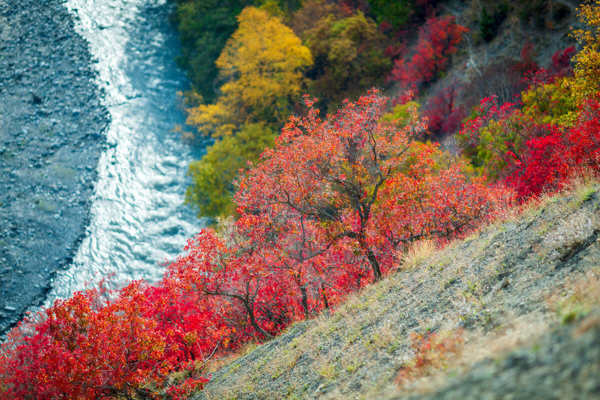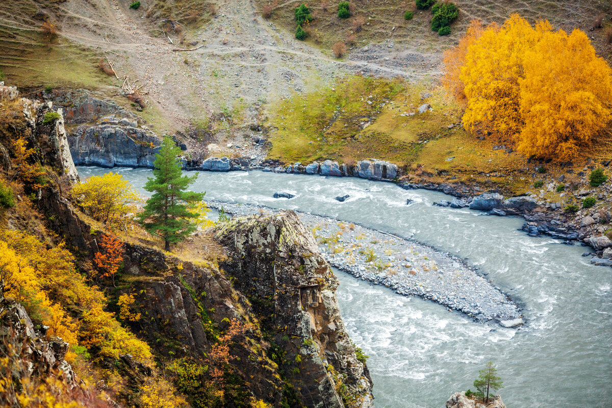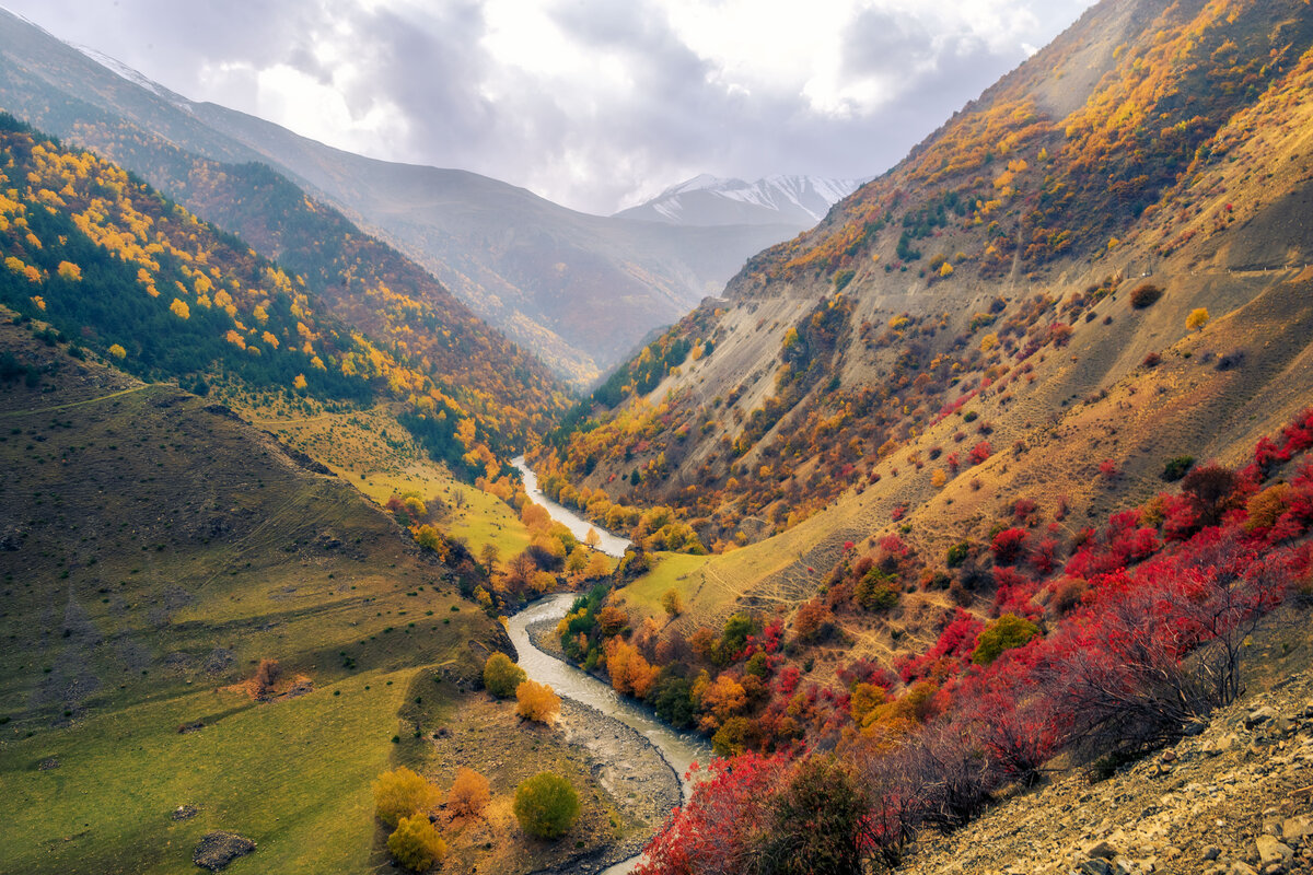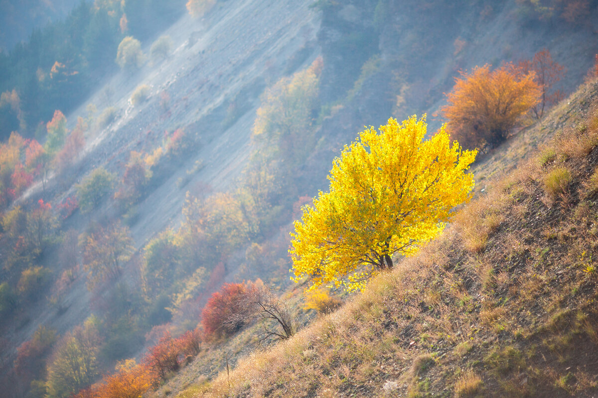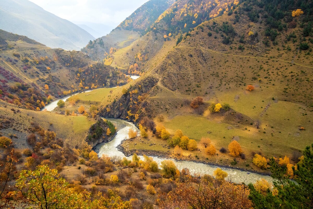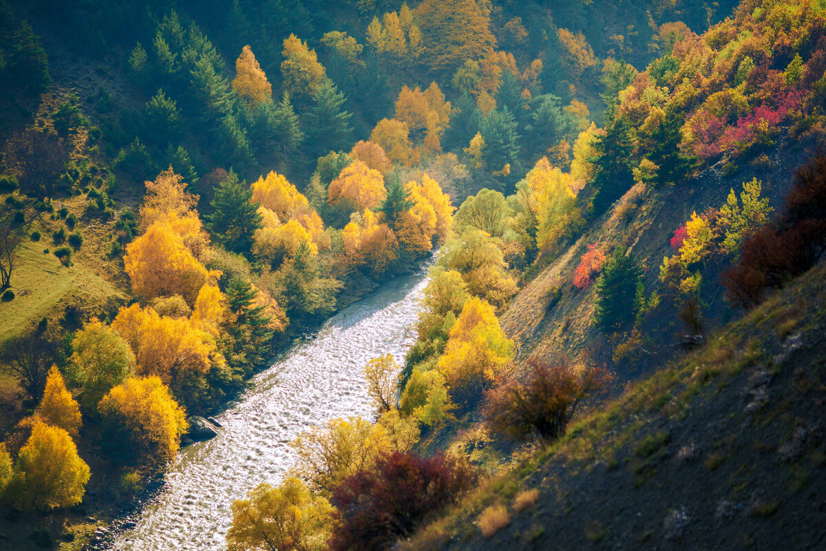 Но мы были вознаграждены невероятными видами: ущелье в осеннем наряде и причудливая игра солнечного света надолго остановили нас на горной дороге