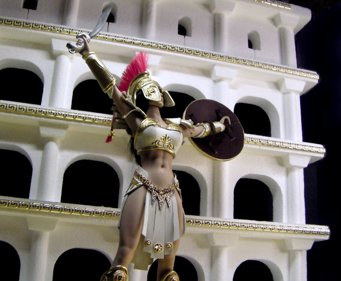 The gladiator of Ancient Rome against the chariot. Gladiator is an action figure cyborg Phicen, in scale 1:6. The author of the armor is your humble servant.