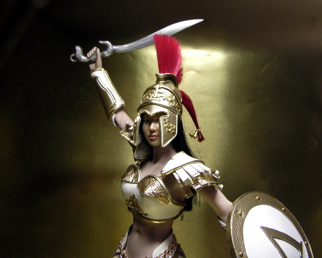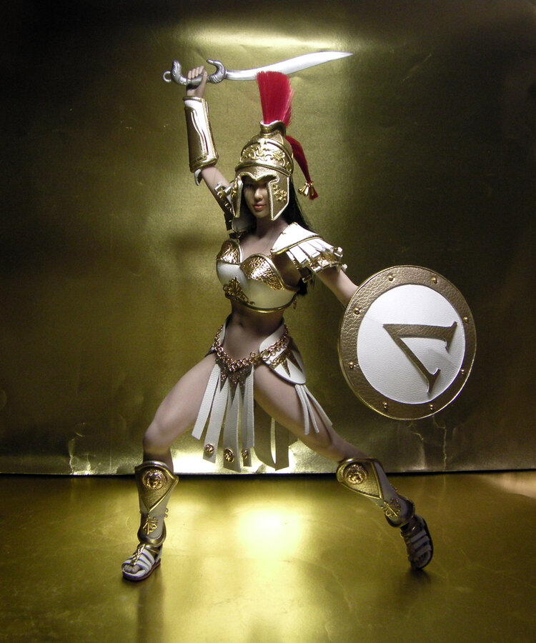 Вот спартанка Афина. Материалы костюма: кожа, металл, волос.