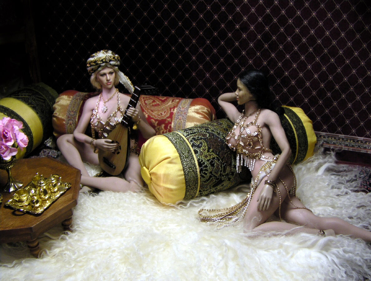 Одалиски Древнего Востока танцуют, для султана, танец живота. Куклы киборги Phicen. Масштаб 1:6. Автор костюмов-ваш покорный слуга.