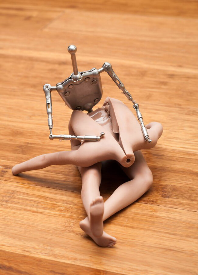 Вот эта самая фигурка. Ее тело отлито из силикона . Внутри стальной шарнирный скелет с 30 точками артикуляции. На фото, для наглядности, извлеченный из тела, скелет.