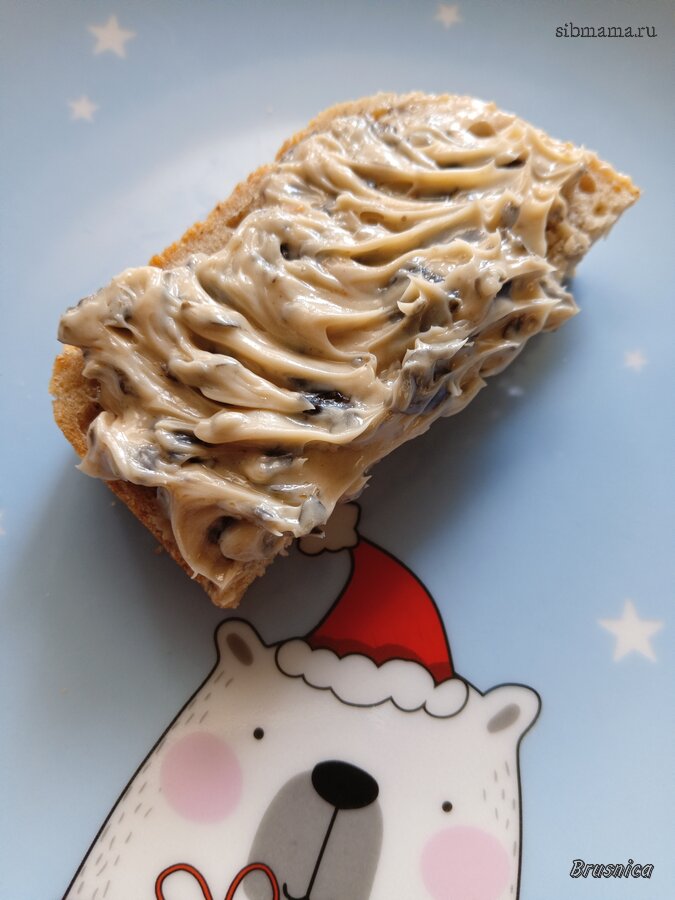 Намазывать на тост тонким слоем, сверху положить ломтик огурца или помидора.