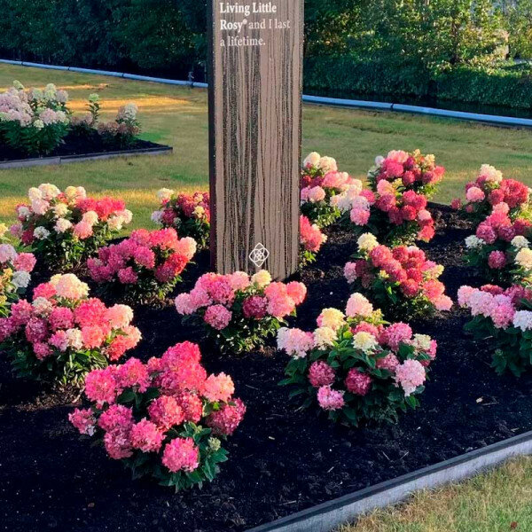 Миниатюрный сорт, идеально подходящий для выращивания в кашпо. Его высота и ширина не превышают 60 см. Имеет достаточно крупные для такой малышки соцветия. Со временем белые цветы постепенно превращаются в темно-розовые. Цветение очень обильное. Рекомендуется для маленьких садов, одиночных и групповых посадок, невысокой живой изгороди.
