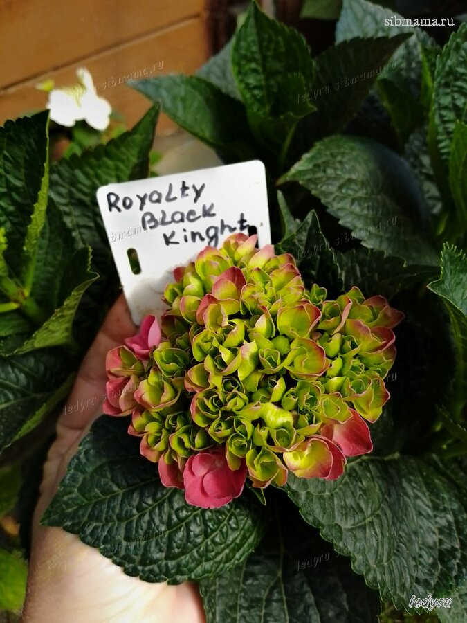 Гортензия крупнолистная 'Black Diamonds' — сорт из серии 'Black Diamonds', открывающей новые грани декоративности крупнолистных гортензий. Селекционеры, заботясь об эффектном облике куста и до, и после цветения, обратили внимание не только на соцветия, но и на окраску и текстуру листвы. Листья очень плотные, жесткие, темно-фиолетово-зеленые, необычной окраски. На листьях рельефно выделяются светлые жилки. Соцветия крупные, кусты компактные, с очень прочными побегами. Гортензию крупнолистную 'Black Diamonds' можно купить для великолепной контейнерной посадки, она выразительна также и на переднем плане парадных композиций. Особенно эффектны сочетания с серебристой или голубоватой хвоей карликовых и среднерослых сортов можжевельников, елей, кипарисовиков.