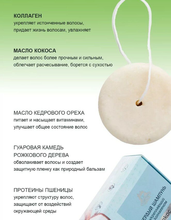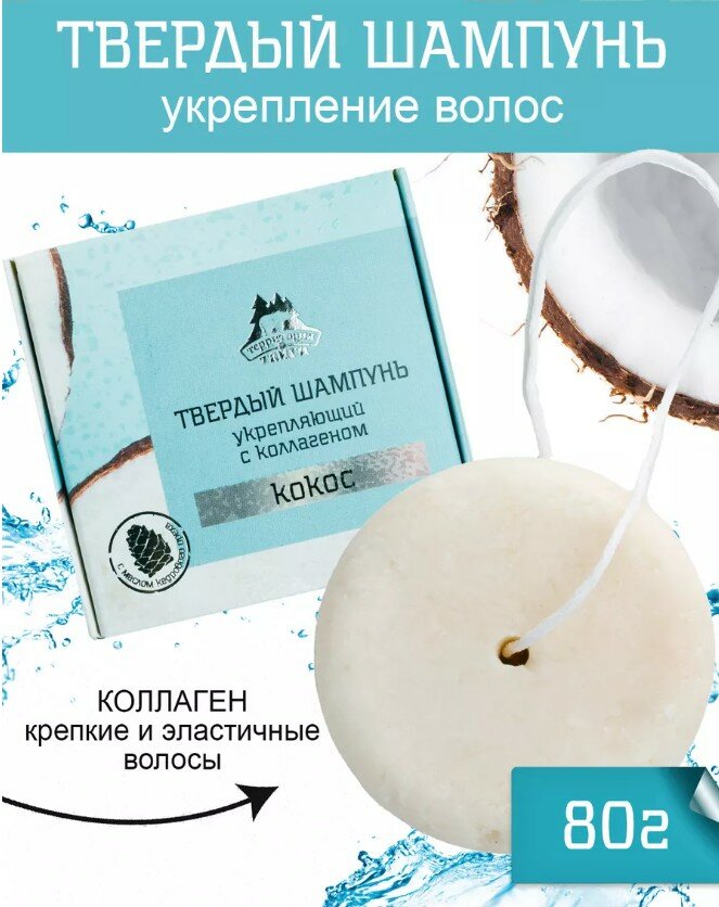 Твердый шампунь укрепляющий с коллагеном "Кокос" 80г НОВИНКА 448