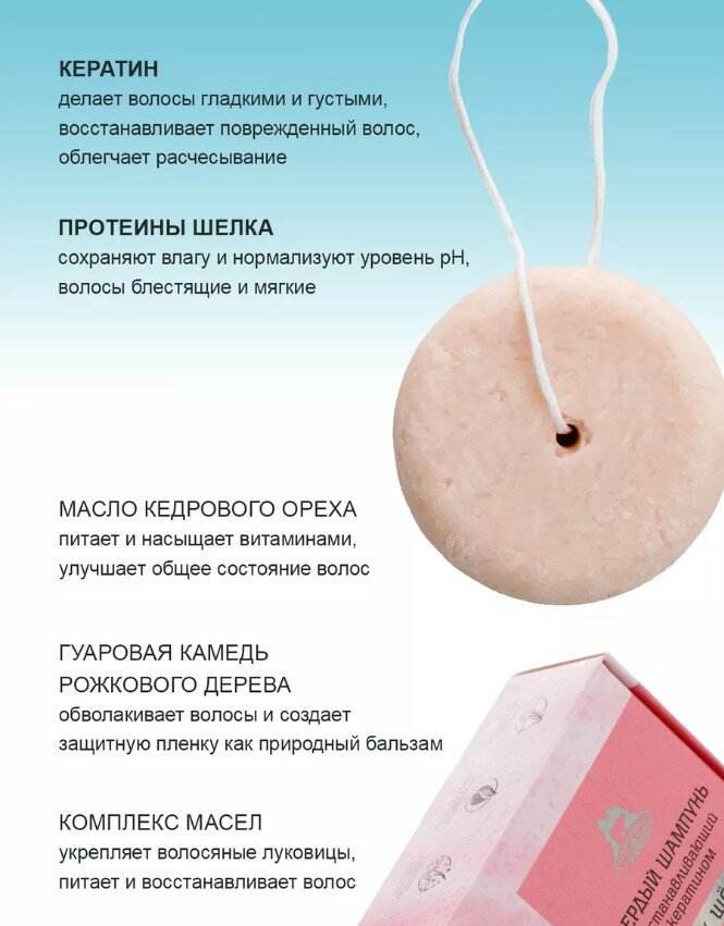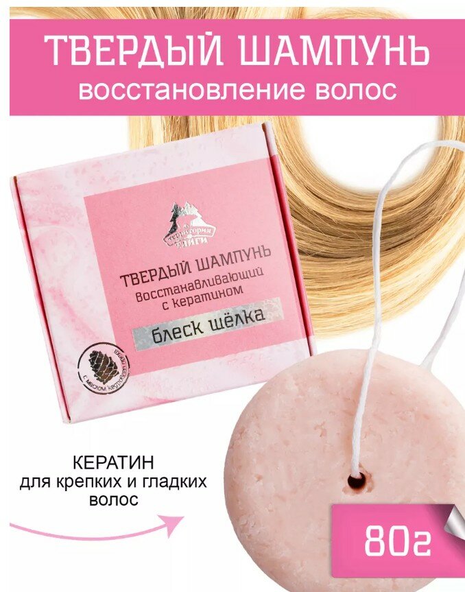 Твердый шампунь восстанавливающий с кератином "Блеск шелка" 80г НОВИНКА 448