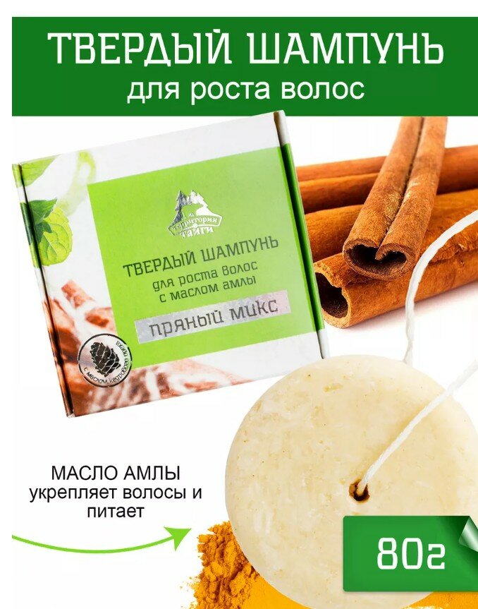 Твердый шампунь для роста волос с маслом амлы "Пряный микс" 80г НОВИНКА 448