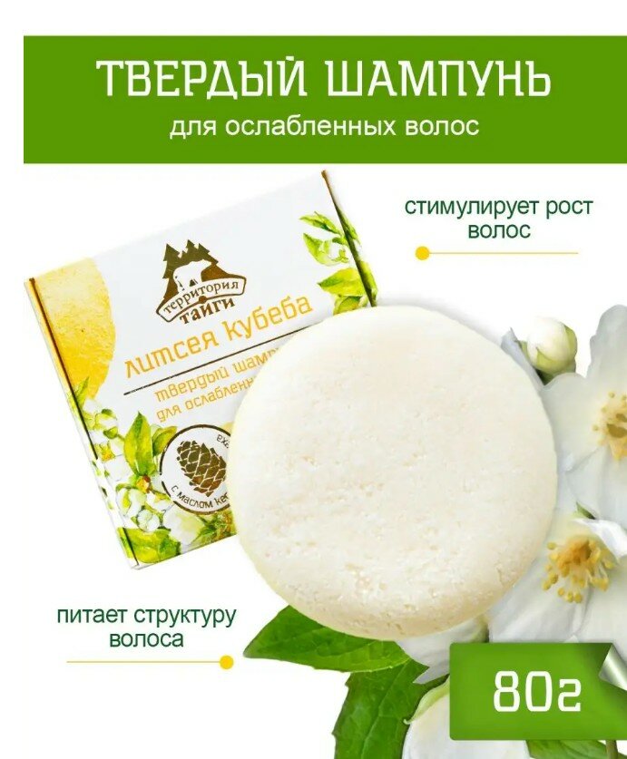 Шампунь твердый "Литсея кубеба" для ослабленных волос, 80 гр 358