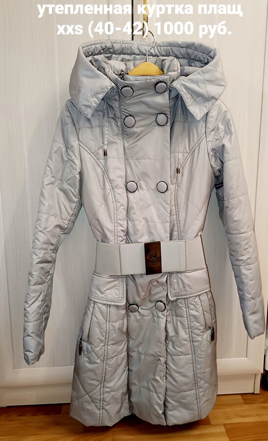 Куртка демисезонная 42-44, 800 руб. С капюшоном (отстёгивается). Воротник с утяжкой. Не тонкая, теплая.