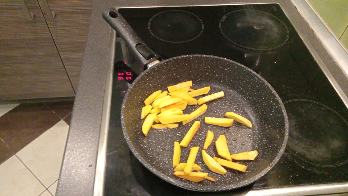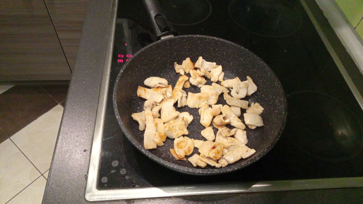 Для быстроты, готовила на двух сковородках. Вкусненько.