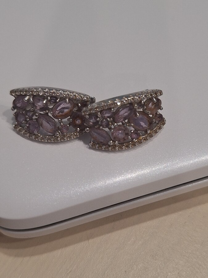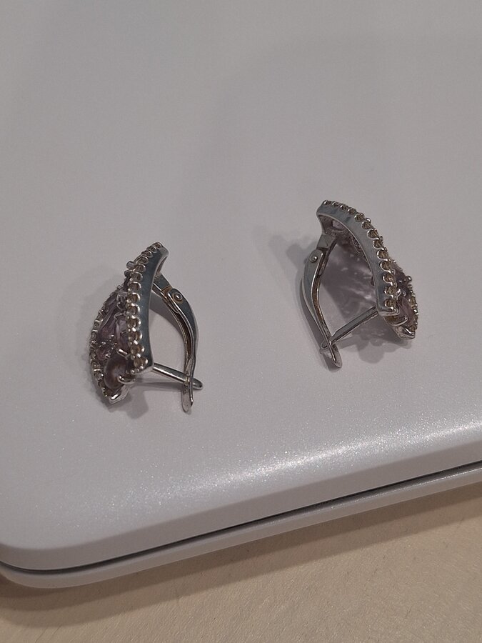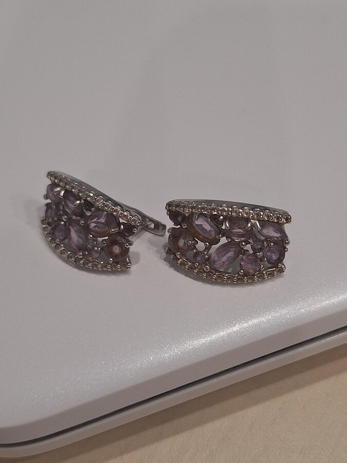 Серьги серебряные с натуральным аметистом и фианитами, очень красивые 2800