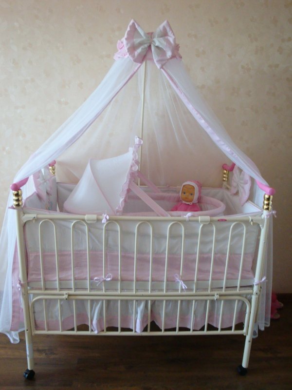 2. Постельное белье может быть любым, главное, чтобы оно было выполнено из натуральных тканей без добавления синтетических составляющих и подходило по размеру. 3. Накидка для колыбели представляет собой тканевую основу, прикрепленную на специально установленные верхние дуги. С помощью накидки можно скрыть малыша от посторонних глаз или создать полумрак для детского сна во время яркого солнечного дня.