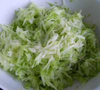 1.почистила кабачек, потерла на мелкой терке (получилось 850 гр) , отжала лишнюю жидкость