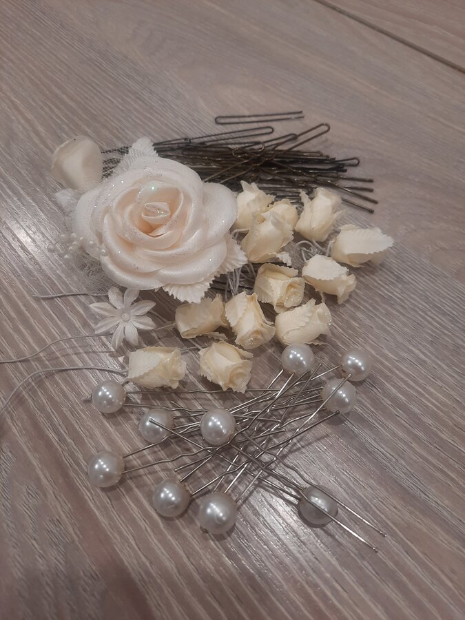 В подарок фата, подьюбнник и аксессуары для волос.