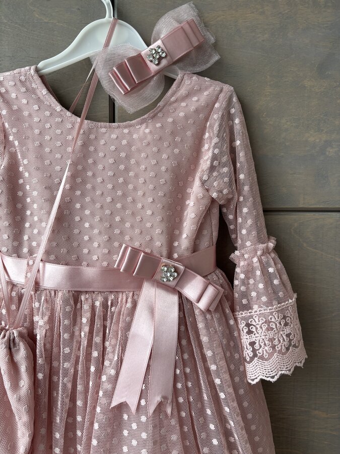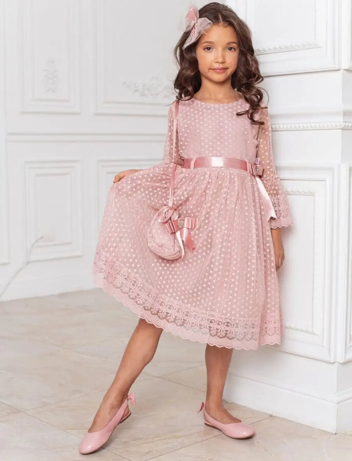 2. Нарядное платье с сумочкой и бантом, размер 122 (7 лет), 1800 руб.