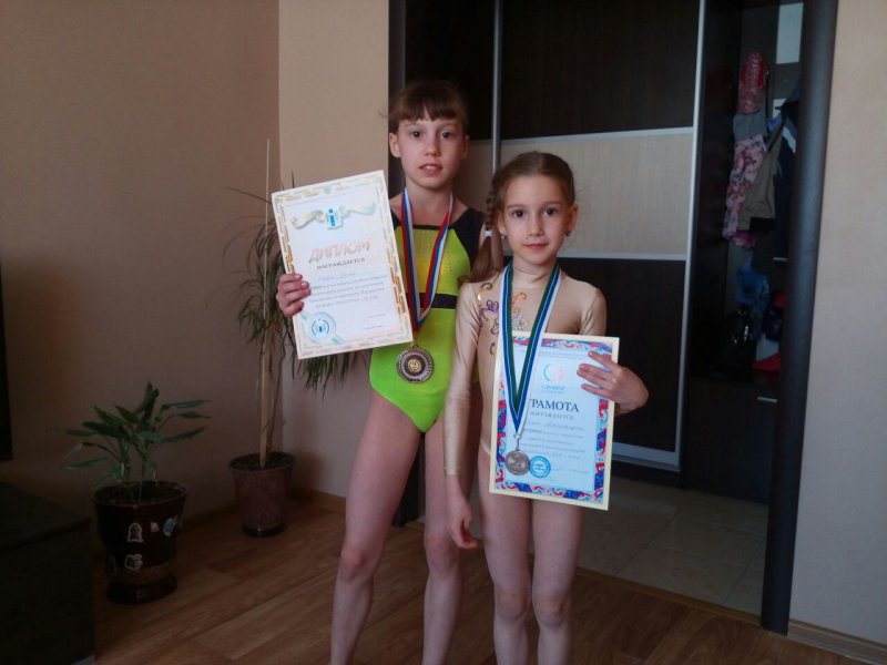 Привет, девочки!! Год закончили))) у обеих по гимнастике серебряные медали. У Даши второй взрослый, у Саши второй юношеский)